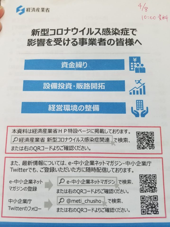 《経済産業省》持続化給付金 経済産業省 補正予算成立待ち