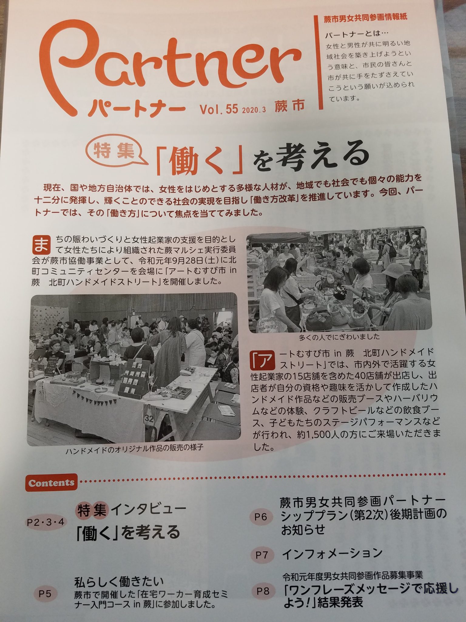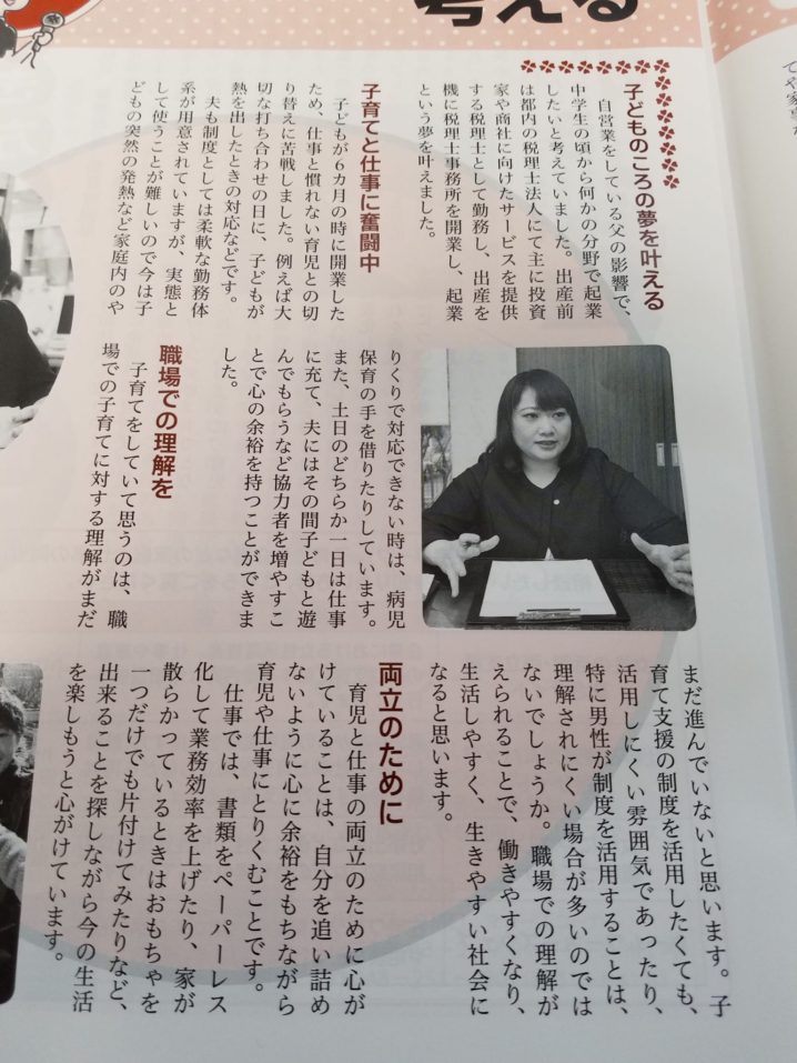 3月1日付の蕨市男女共同参画情報誌「Partner」のVol.55に、家庭と仕事の両立のテーマにて掲載いただきました。