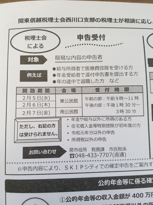 さて、確定申告時期のシーズンですね。昨日2/6は蕨市の東公民館にて「簡易な内容の申告者」を対象とする税理士会の税務支援活動を行いました。